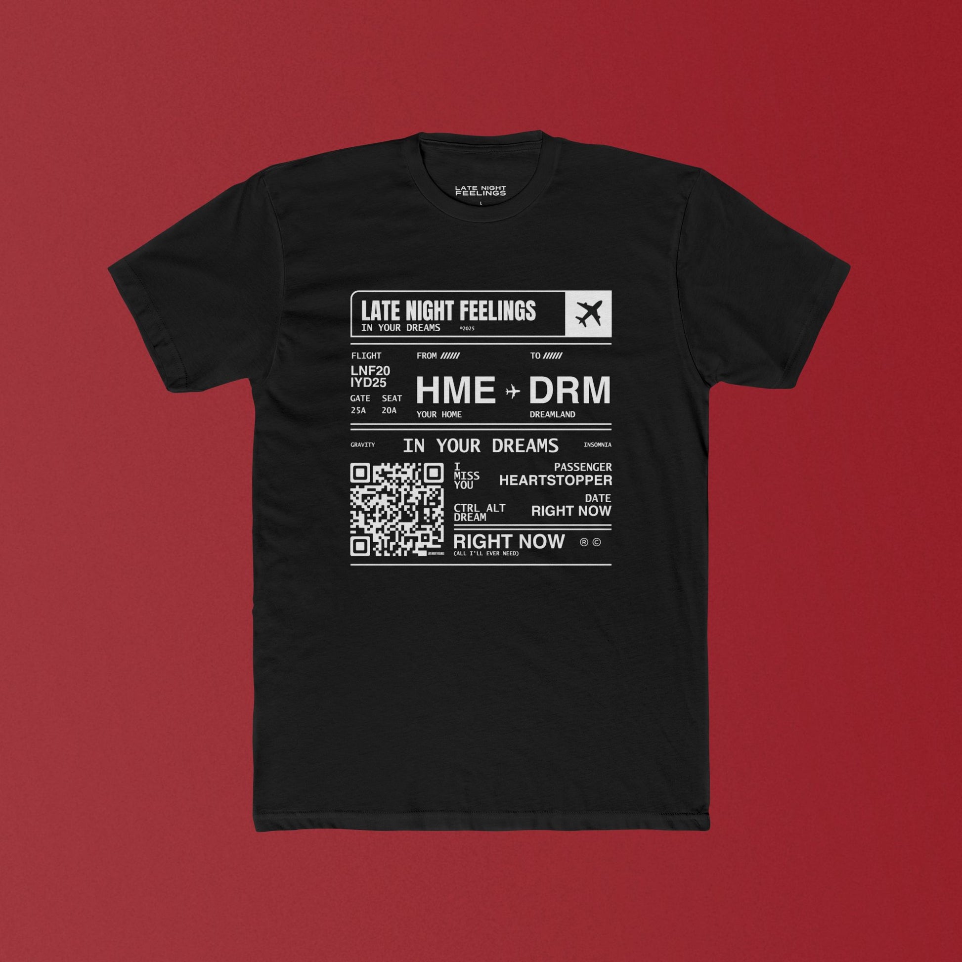Your ticket has been stamped — destination: Dreamland. This graphic tee transforms the In Your Dreams tracklist into a sleek boarding pass design, complete with flight codes, QR codes, and a one-way trip to late-night feelings. Whether you’re grounded or on the go, this shirt says you’re always boarding Flight LNF25. No baggage fees, just vibes.