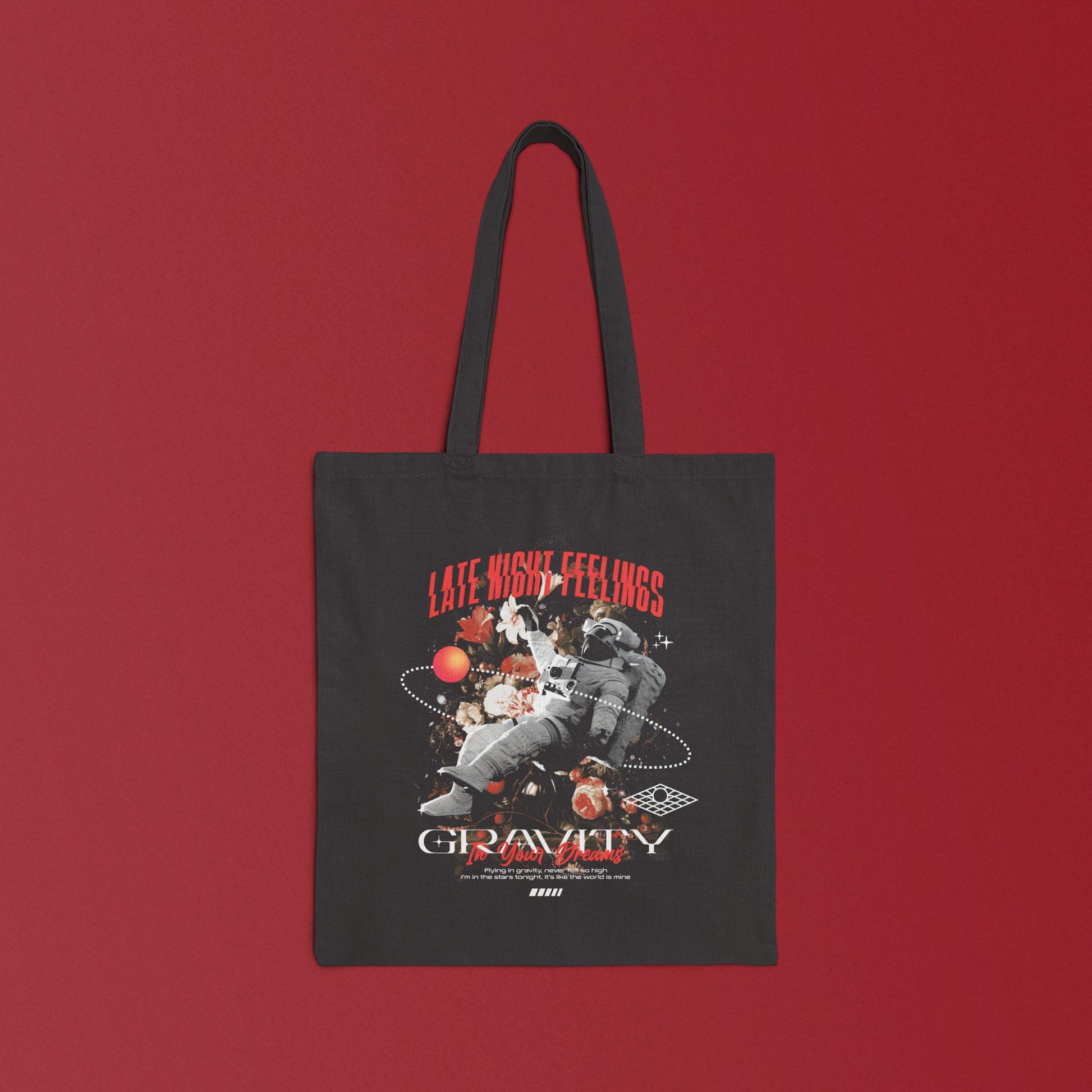 Carry the universe with you. This sturdy tote features the Gravity design from Late Night Feelings’ In Your Dreams — a drifting astronaut surrounded by blooming flowers and cosmic orbits. Equal parts dreamy and space-age bold.