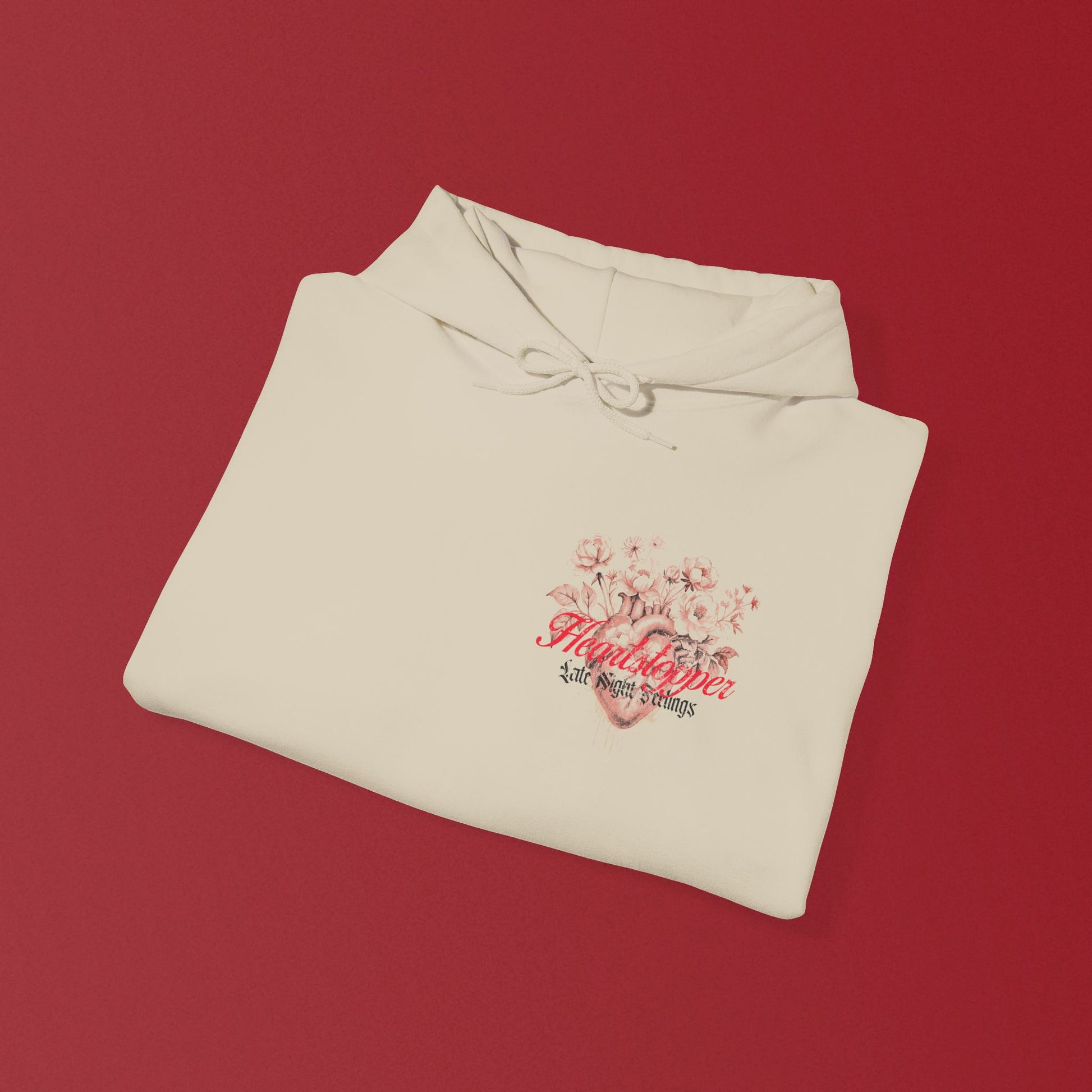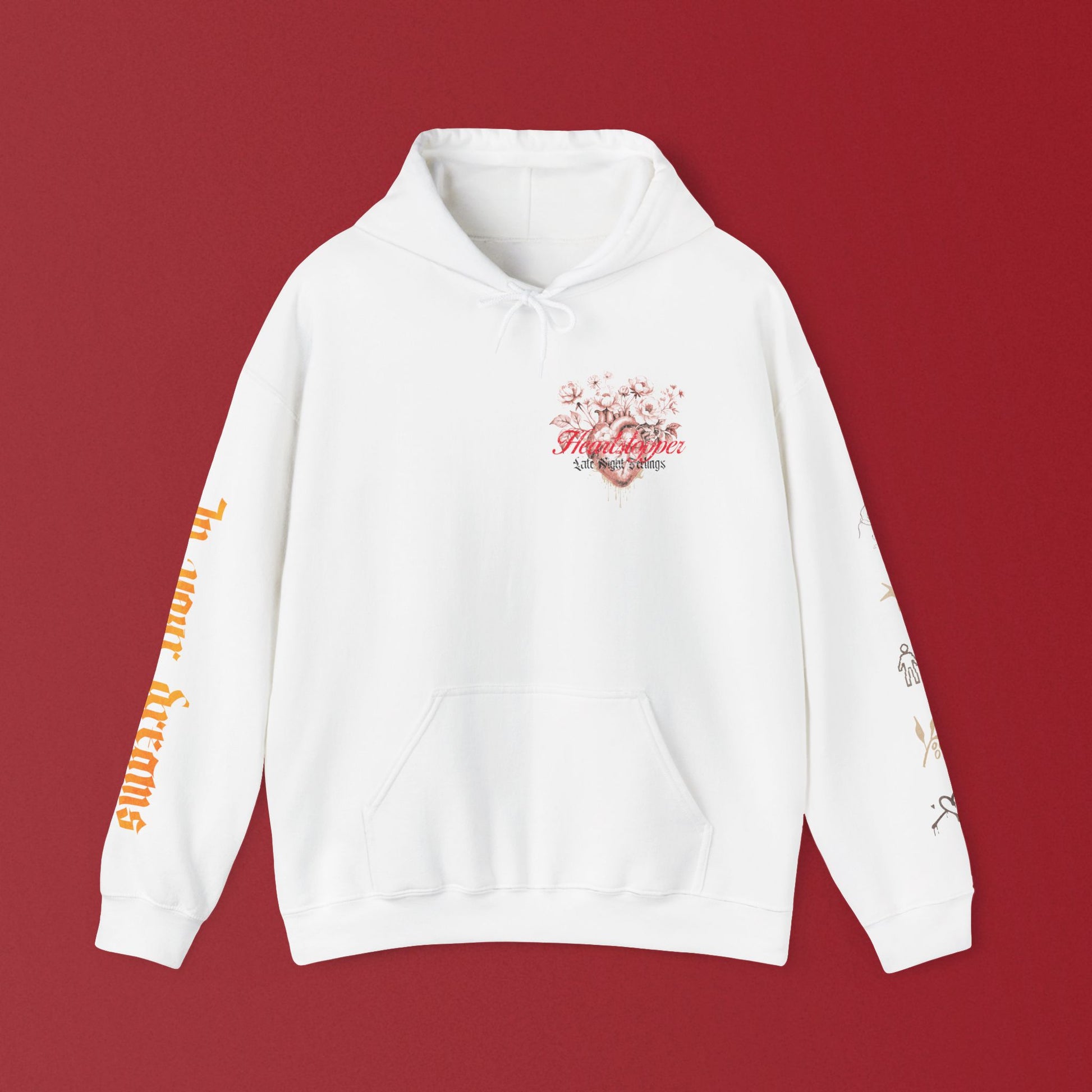 Cozy meets romantic. This Heartstopper hoodie from Late Night Feelings’ In Your Dreams collection pairs vintage-inspired artwork — a blooming anatomical heart with cherubs and roses — with sleeve graphics and bold gothic lettering. It’s part statement piece, part comfort essential.