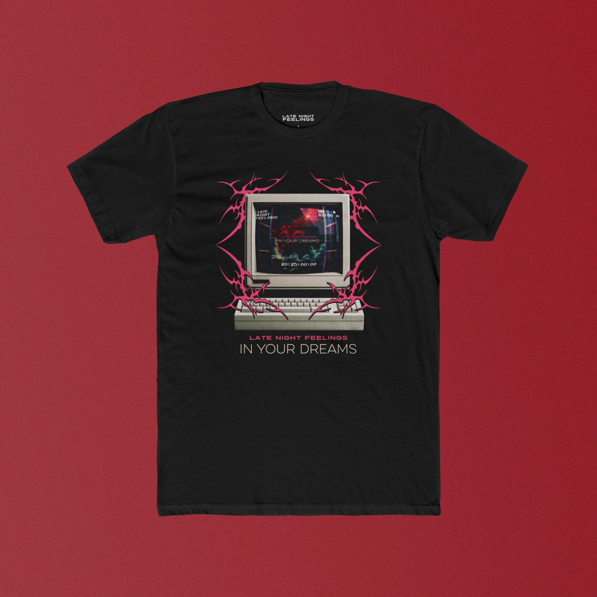 Dream in pixels, live in vibes. This tee features the In Your Dreams album artwork from Late Night Feelings, designed with a nostalgic 90s computer screen surrounded by bold tribal flames. Perfect for fans who love a little glitch, a little retro, and a lot of late-night energy.